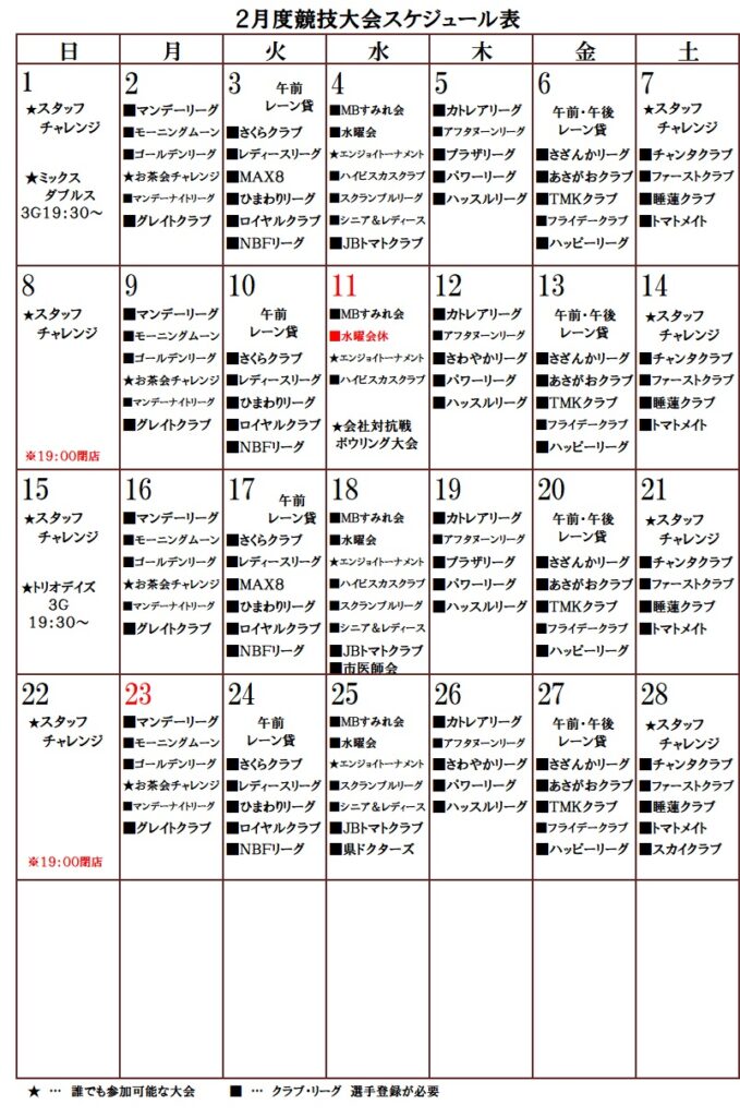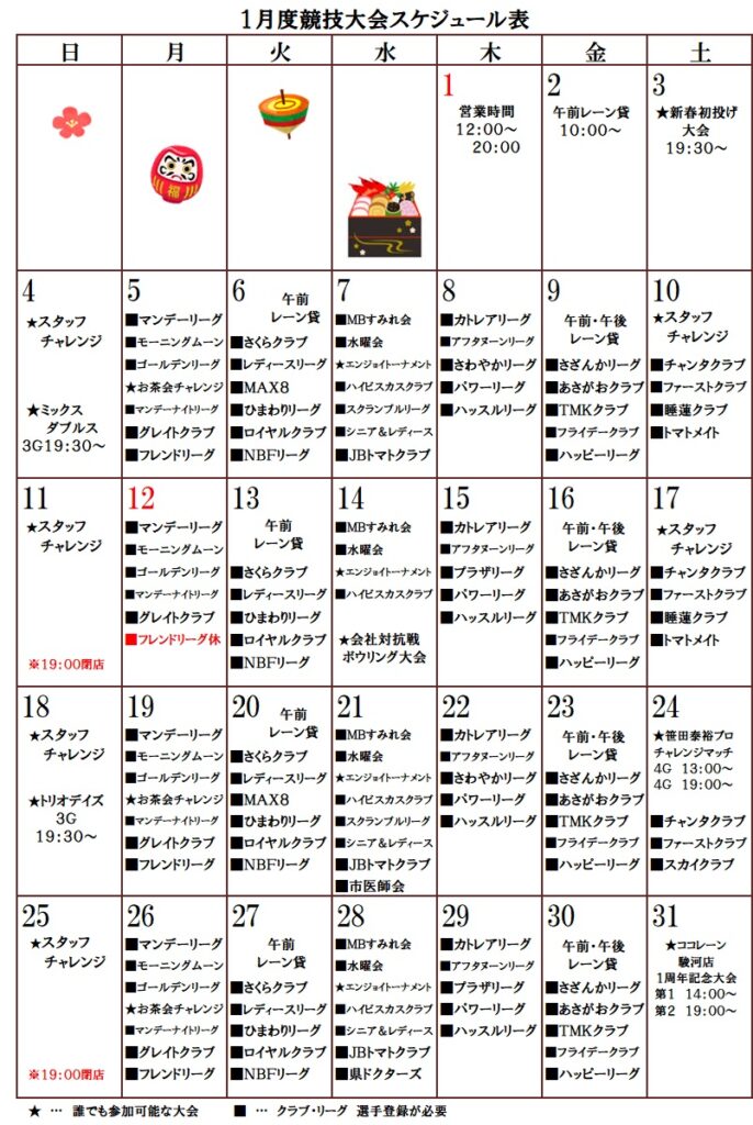 2026年1月・2月度行事予定